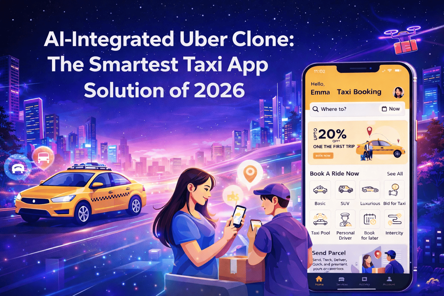 • AI-Integrated Uber Clone: The Smartest Taxi App Solution of 2026